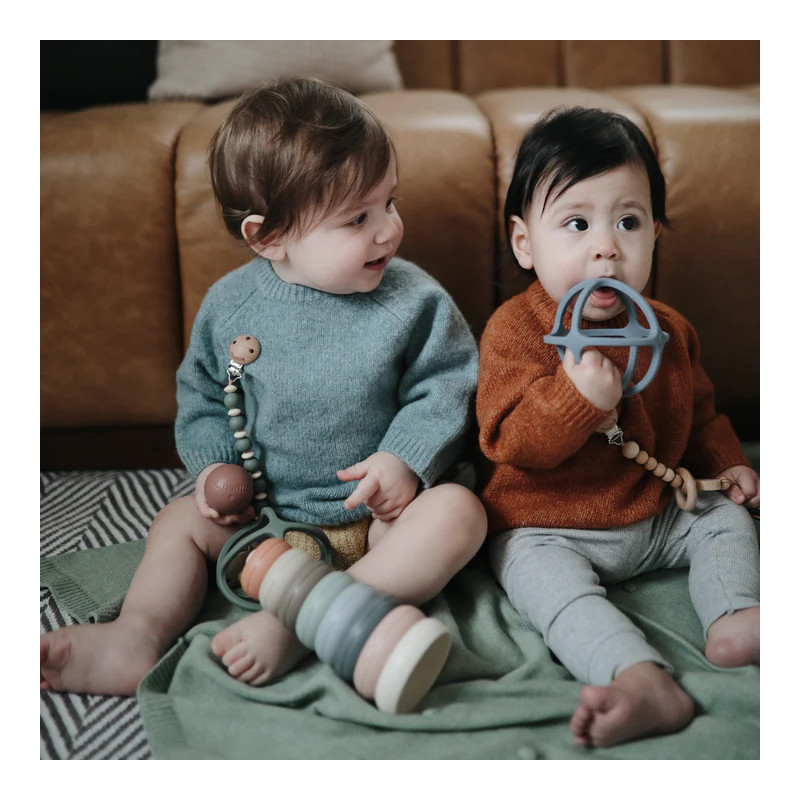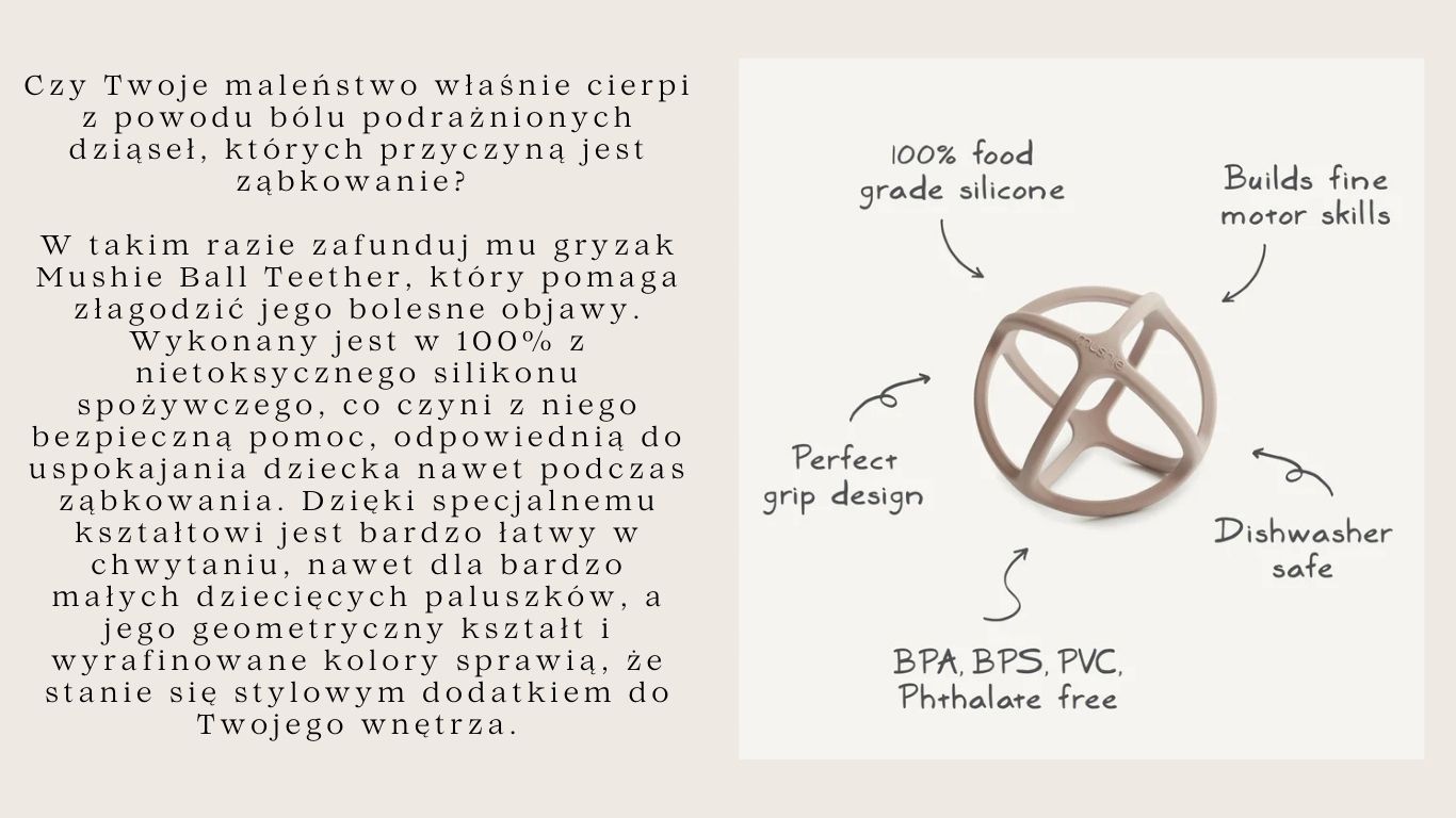 Gryzak silikonowy dla niemowlaka Mushie 3D Ball – na ząbkowanie Dove Gray