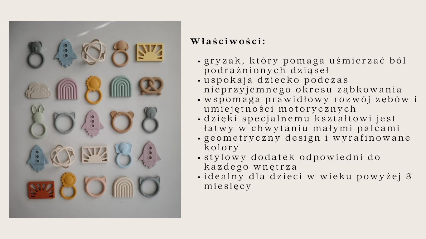 Sensoryczny gryzak 3D wykonany z wytrzymałego sylikonu spożywczego w kształcie ażurowej kuli. Ten niekonwencjonalny design gwarantuje łatwość chwytania, a delikatna faktura oraz ciekawa kolorystyka powodują, że Maluszek będzie zaciekawiony gryzakiem aby poznawać go wszystkimi zmysłami.