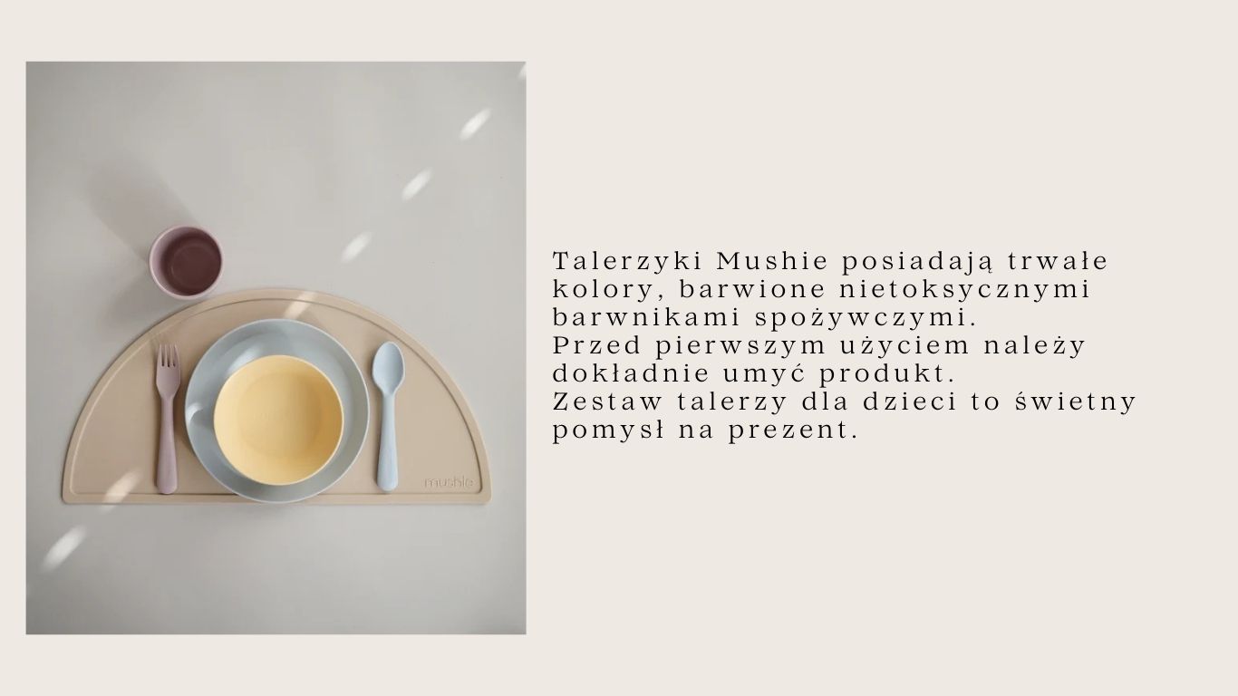 Skompletuj całą zastawę w pasującym kolorze i stylu, dodając pozostałe produkty Mushie