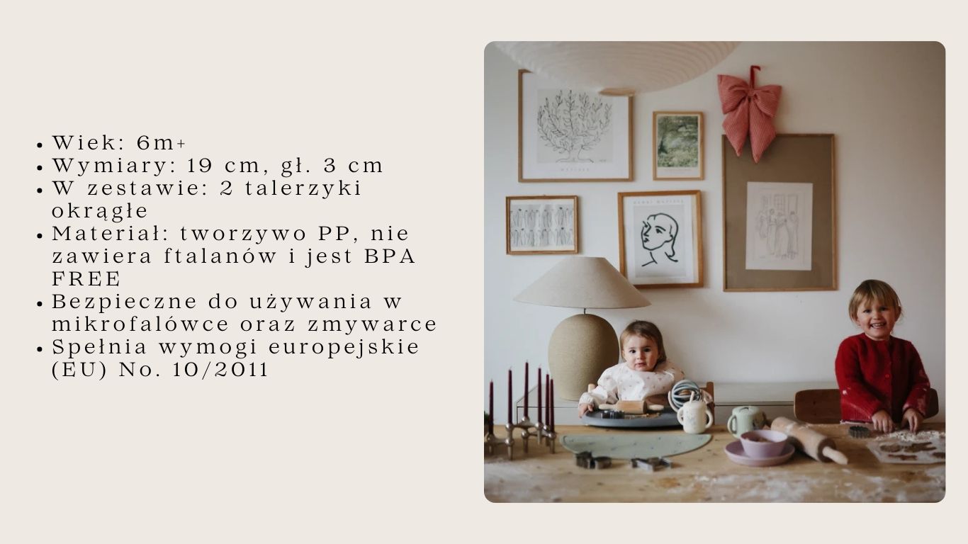 Stwórz piękną zastawe stołowa dla Twojego dziecka! Stylowe talerzyki ROUND charakteryzują się delikatną kolorystyką inspirowaną naturą, oraz subtelnym designem, Połączenie tych dwóch cech, sprawia że talerzyki sa elegackie i minimalistyczne pasując do każdego nowoczesnego domu. Idealnie pasują do sylikonowych śliniaczków Mushie.