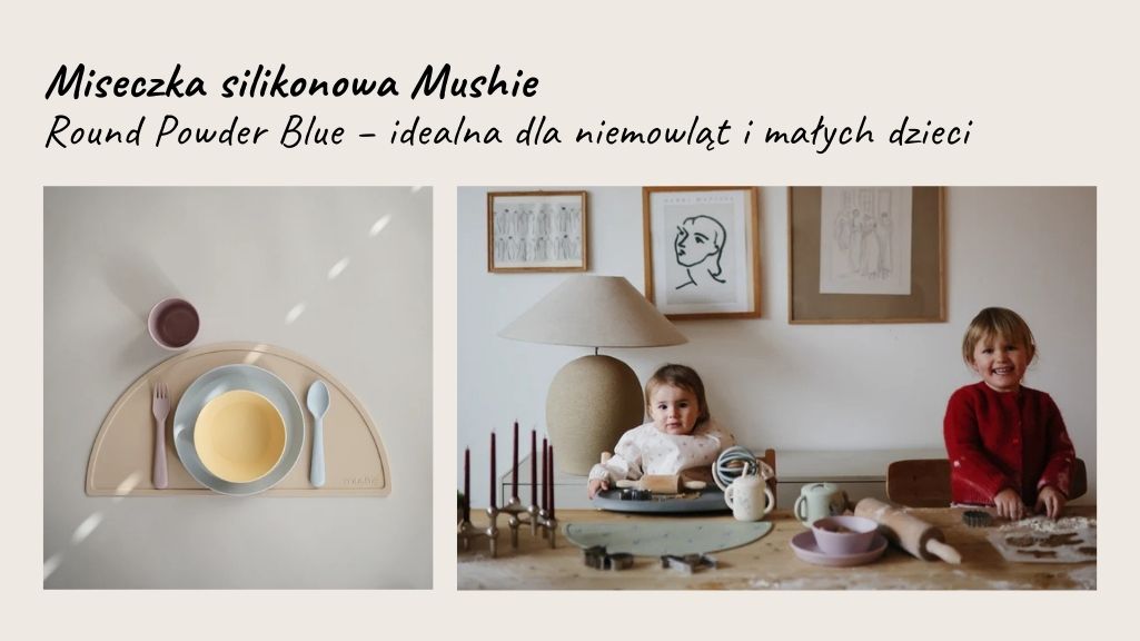 Miseczka silikonowa Mushie Round Powder Blue- idealne dla niemowląt i małych dzieci