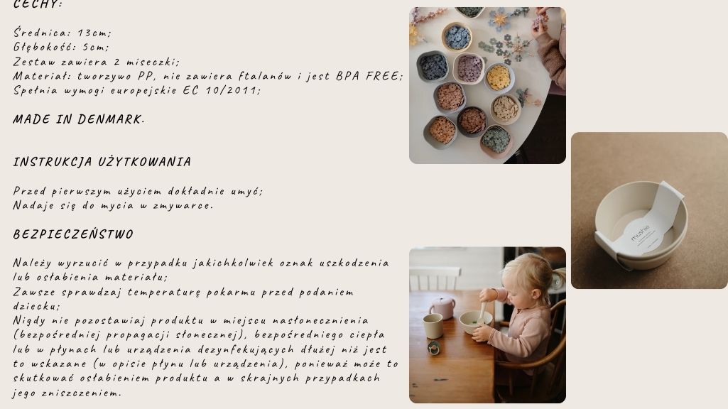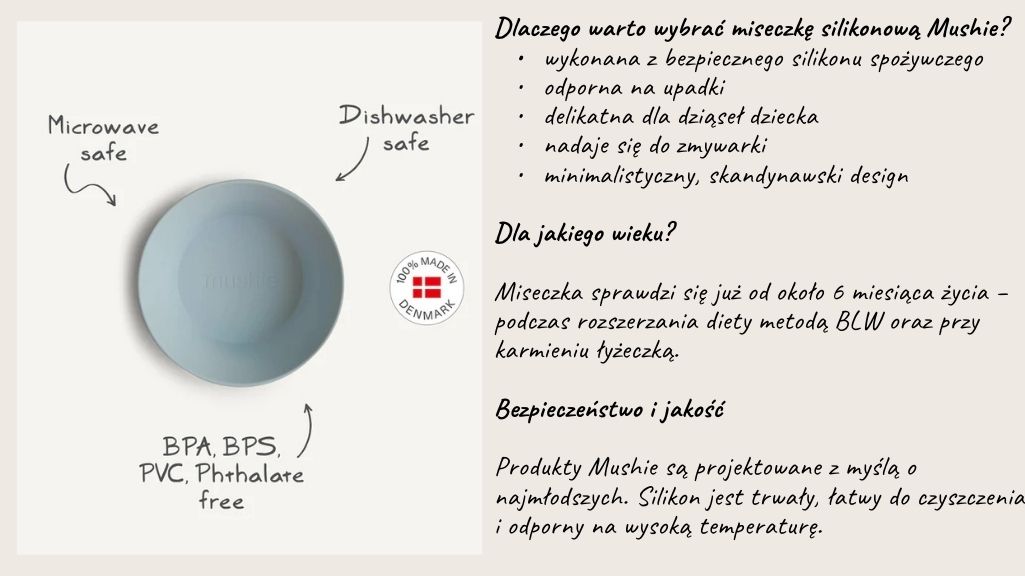 Stwórz piękną zastawę stołowa dla Twojego dziecka! Stylowe miseczki ROUND charakteryzują się delikatną kolorystyką inspirowaną naturą, oraz delikatnym designem. Połączenie tych dwóch cech, sprawia że talerzyki są eleganckie i minimalistyczne pasując do każdego nowoczesnego domu. Idealnie pasują do sylikonowych śliniaczków Mushie.