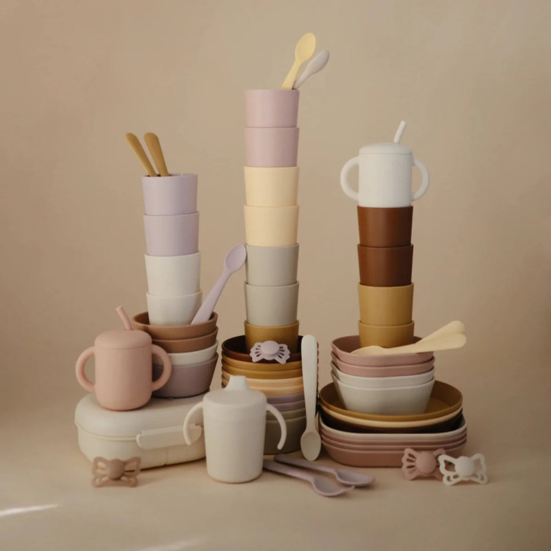Skompletuj całą zastawę w pasującym kolorze i stylu, dodając pozostałe produkty Mushie